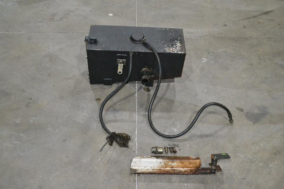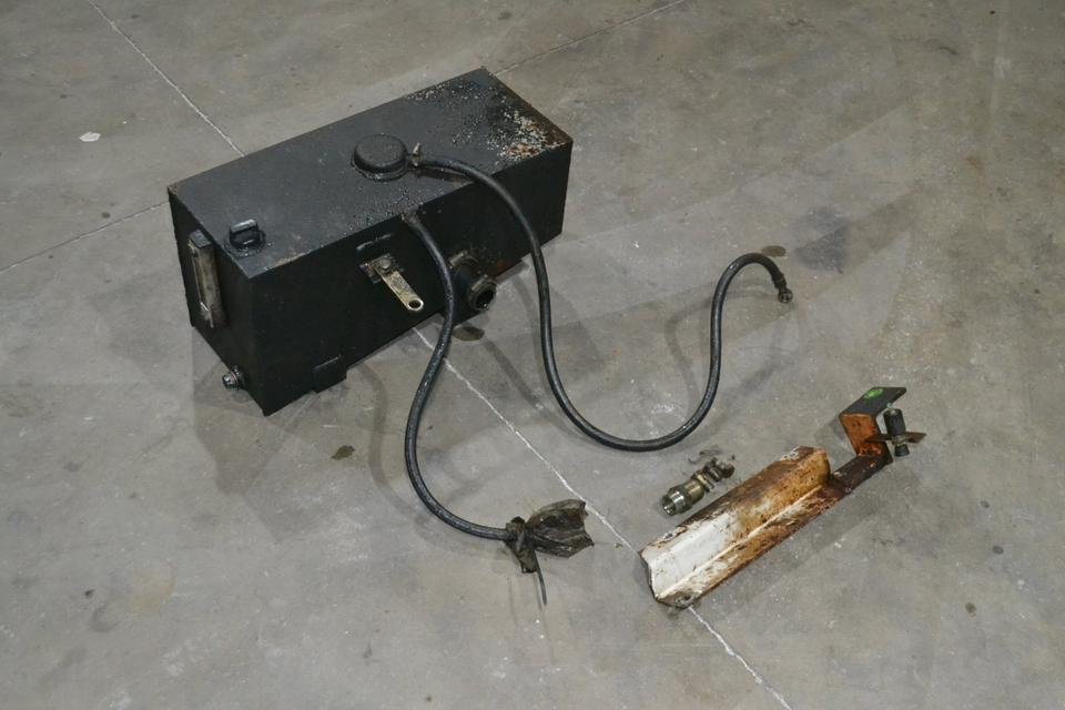 Hulphydraulische olietank voor Deutz DX 6.05  6.10  6.30  4.70  110 120. Te koop is een originele hydraulische hulpolietank die gemonteerd was op een Deutz DX6.05. De hulpolietank wordt verkocht zoals afgebeeld, compleet met bevestigingsmateriaal en toevoerleiding. De tank is onbeschadigd en klaar voor installatie. De hulpolietank past op de volgende tractoren: DX6.30, 6.10, 6.05, 4.70, 110, 90, 120 en andere.